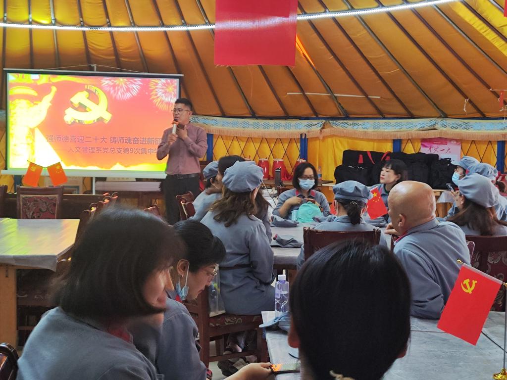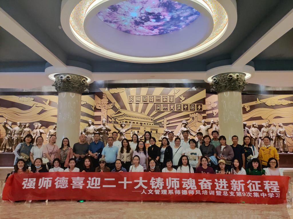 为迎接党的二十大的胜利召开,同时教育引导广大教职工坚定理想信念、厚植爱国情怀、涵养高尚师德,全面提升政治素养和理论水平,9月13日下午,人文管理系在鄂尔多斯市文化产业园区以“强师德喜迎二十大、铸师魂奋进新征程”为主题,在教职工中开展了2022年师德师风集中培训暨总支第9次集中学习。