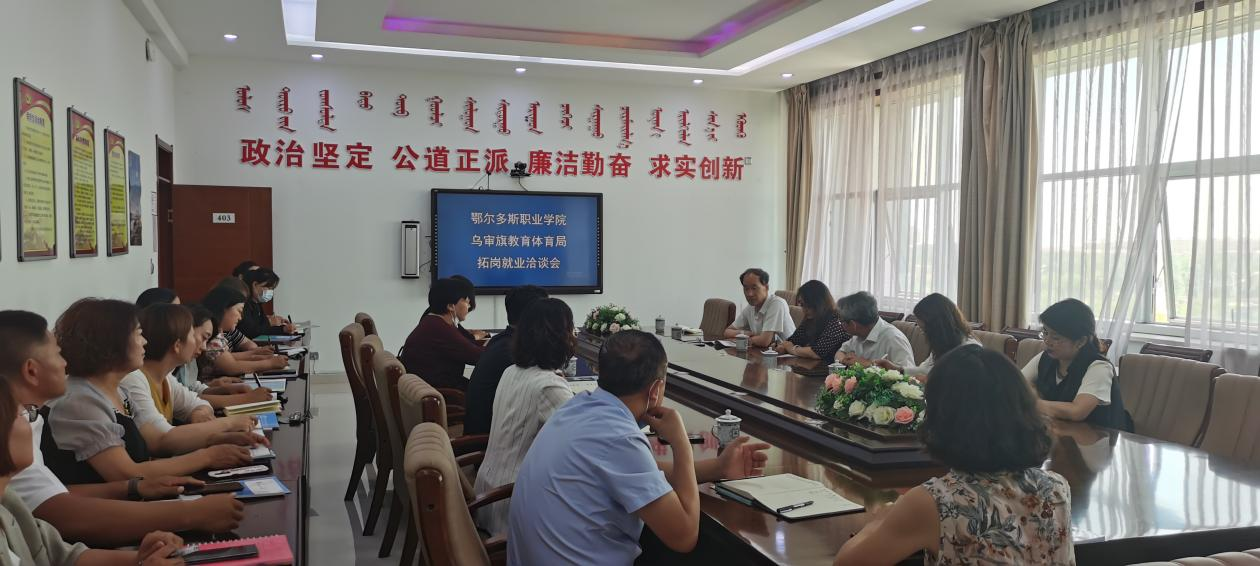 为贯彻落实教育部关于高校毕业生就业工作的决策部署,进一步落实学院访企拓岗促就业专项行动,全面深化校企合作、供需对接,促进我院毕业生高质量就业,7月6日,人文管理系书记和主任在学院招生就业处处长孙虎的带领下,与科研处、培训中心、资源工程系、化学工程系、建筑工程系负责人一起前往乌审旗乌审旗教育局与苏里格经济开发区调研考察。