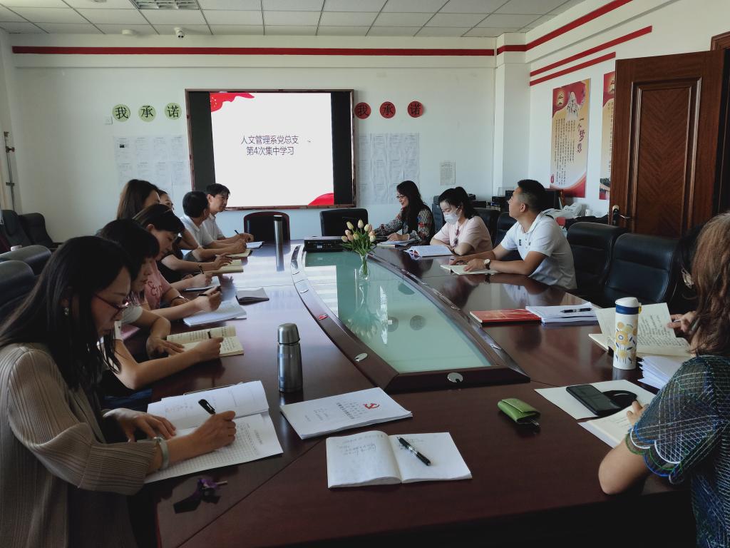 6月10日,人文管理党总支在教研楼431组织第4次集中学习。人文管理系全体教师党员参加了学习会。