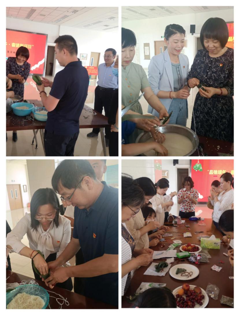 活动分为四个环节。“知来历话习俗·浓浓爱国情”视频暖场环节,通过观看端午习俗视频,知端午来历,纪念伟大爱国诗人屈原,感受浓浓爱国之情;“端午粽飘香·初心忆党史”红色故事环节,段泳瑶、张爱文老师分别讲述“真理的味道有点甜”和“党史小故事”;在“浓情端午 忆童年 聊传统”交流分享环节,朱必云、由国艳两位老师分别分享南北方不同的端午习俗;“品味端午·奋进新征程”竞赛活动环节,全体党员和教师分为2队比拼包粽子、缝香包、划“龙舟”。活动最后,马建峰书记为参赛队员颁发纪念品。