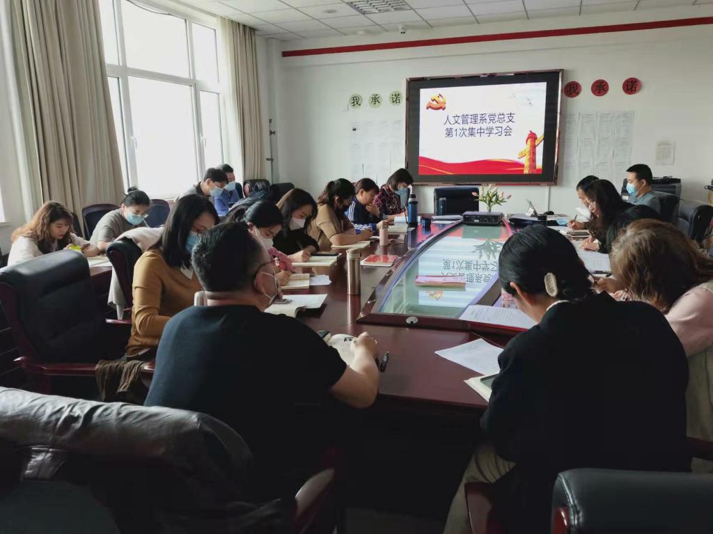 3月18日,人文管理系党总支在教研楼431会议室组织2022年度第1次集中学习。人文管理系全体党员教师参加学习会。