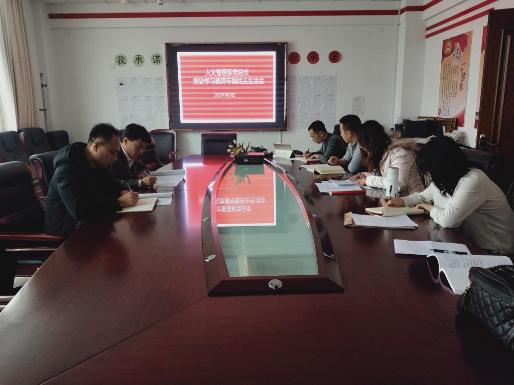 2022年1月21日上午,人文管理系党总支在教研楼431会议室召开2021年度党史学习教育专题民主生活会。学院党委党史学习教育民主生活会第二指导组组长乔祥、成员王辉参加了专题民主生活会。