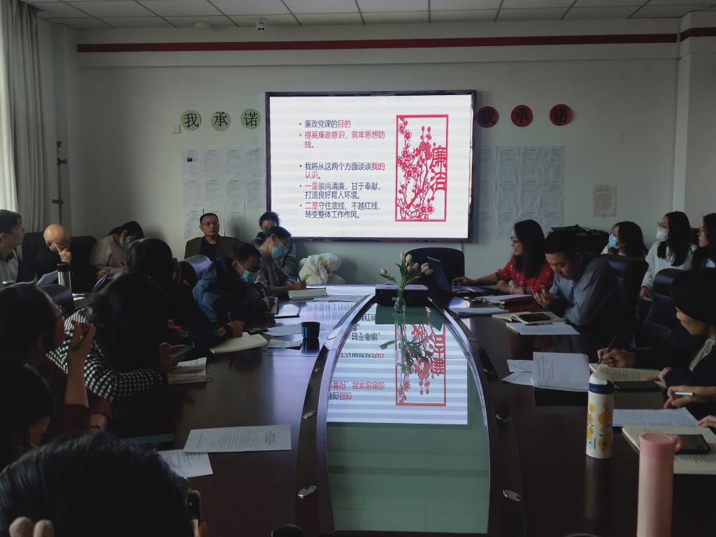 会上,杨梅书记给大家带来了一堂内容深刻的廉政党课。她以《敲响廉洁警钟、转变工作作风》为题,通过反面教材博士李富荣、中国环境科学研究院原党委副书记、院长孟伟等违反廉政纪律的几个人物事例和正面典型改变山区女童命运的公益校长张桂梅及人文管理系身边典型的先进事例,从崇尚清廉,甘于奉献,打造良好育人环境;守住底线,不越红线,转变整体工作作风两个方面谈了廉政的重要性。她希望老师们从廉政教育中受到启发,提高廉洁意识,筑牢思想防线,更新教育理念,潜心教学,锤炼技能,甘于奉献,全心全意为学生服务,努力成为一名党和人民满意的高素质专业化创新型的优秀教师。期间,全体教职工结合正反典型案例,分5个组就“师德师风建设”开展了交流讨论,并重温了《人民教师誓词》。