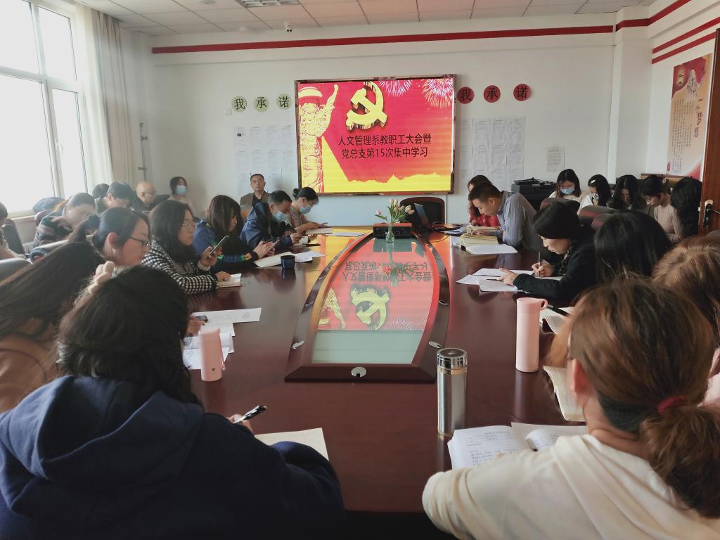 11月2日,人文管理系党总支在教研楼431召开全系教职工大会暨总支第15次集中学习会。人文管理系全体教师参加会议。会议由系党总支书记杨梅主持。