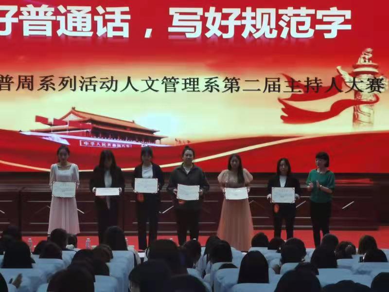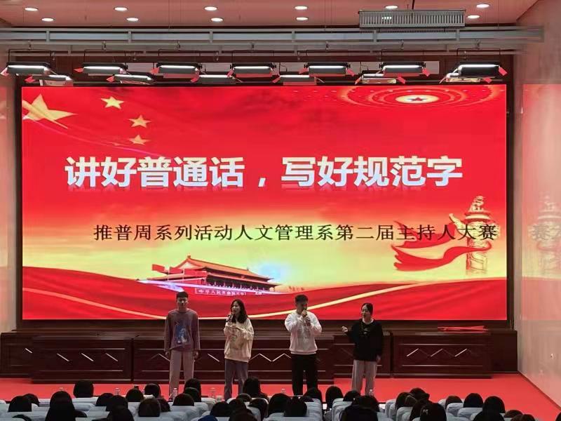 二是将党史学习与普通话活动结合起来。组织人文管理系各班召开主题为“普通话诵百年伟业、规范字写时代新篇”主题班会,让同学们在百年党史的讲述中,推行普通话。