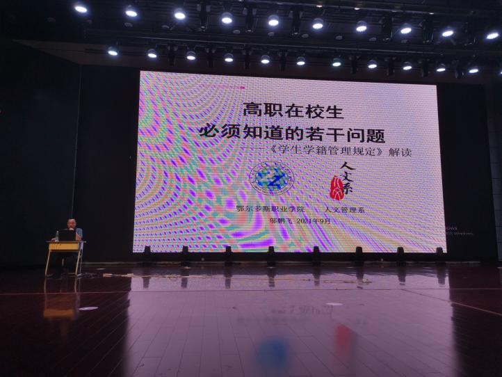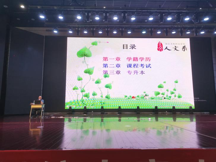 9月2日下午,人文管理系教务科邬鹏飞老师就《学院学籍管理规定》给学生作了详细解读,让学生在入学时就能够把一些重要的管理要求深入了解,为学生顺利毕业提供制度保障,同时也对学生在校学习提出了明确要求。