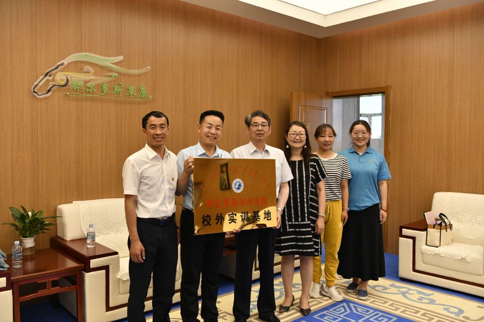随后,校企双方就后续合作育人、教室培训项目等事宜开展座谈交流。孙虎处长代表学院向鄂尔多斯草原颁授“校外实训基地”牌匾。