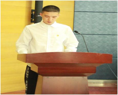 学院团委副书记、人文管理系团总支书记王磊老师致辞。王磊老师在致辞中表示希望大家积极履行“自我教育、自我管理、自我服务”的职能,在服务广大师生中做出积极贡献。并对学生会以后的工作提出要求。他希望新一届主席团成员能够把学生会工作做好、做实、做出彩。