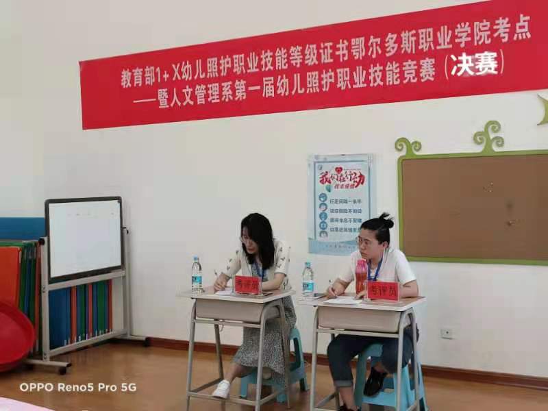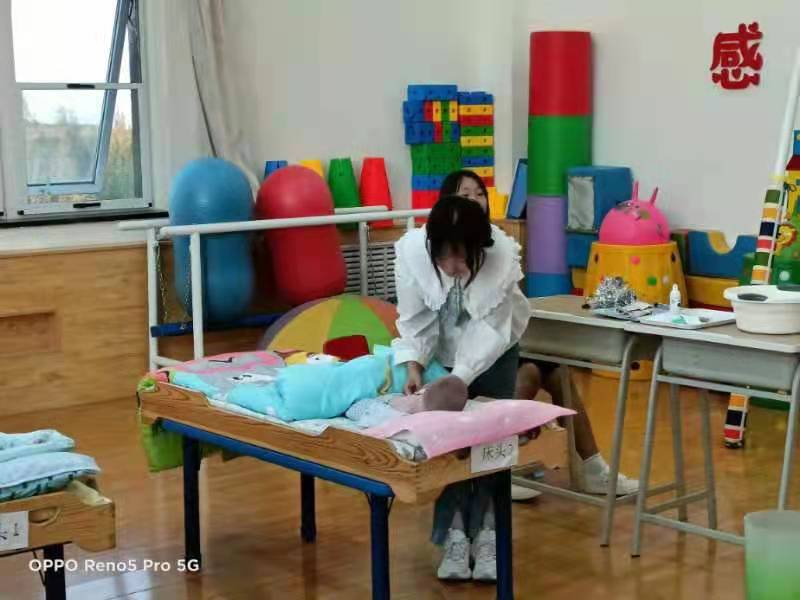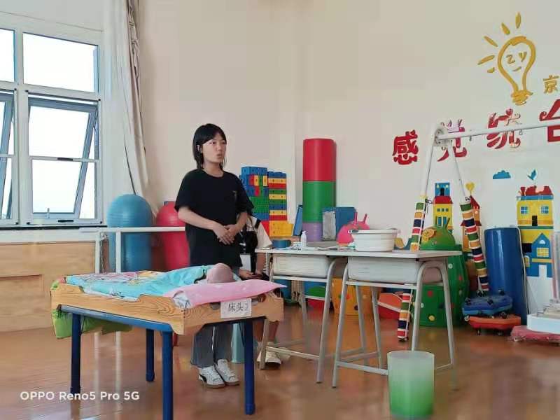 为认真贯彻落实《关于在院校实施“学历证书+若干职业技能等级证书制度试点方案”》工作精神,也为展示优秀学生的技能风采,提高学生的综合竞争力,为今后的培训工作打下良好的基础,2021年7月7日晚,人文管理系在学院餐厅四楼(410)感觉统合实训室举行了人文管理系第一届1+X幼儿照护职业技能竞赛(决赛)。从幼儿照护职业技能等级证书考试暨人文管理系第一届幼儿照护职业技能竞赛(初赛)100名选手中脱颖而出的,学前内容排名前5名以及护理内容排名前5名共计10名选手中参加了决赛。