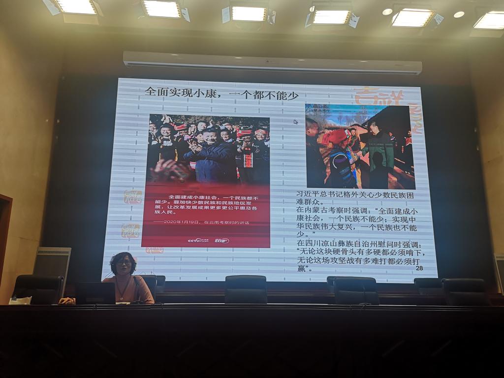 基础部教师薛宏以《铸牢中华民族共同体意识、守望相助促发展》为题,给老师们带来一场精彩绝伦的讲座。薛老师从怎样理解铸牢中华民族共同体意识开篇,用生动鲜活的事例阐明了铸牢中华民族共同体意识的重要性,并从内蒙古的成功实践中看到了前所未有的成效。薛老师指出各民族共同团结奋斗、共同繁荣是现阶段民族工作的主题,今后要以铸牢中华民族共同体意识为主线,促进各族师生像石榴籽一样紧紧拥抱在一起,让“民族团结一家亲同心共筑中国梦”成为校园一道亮丽风景线。