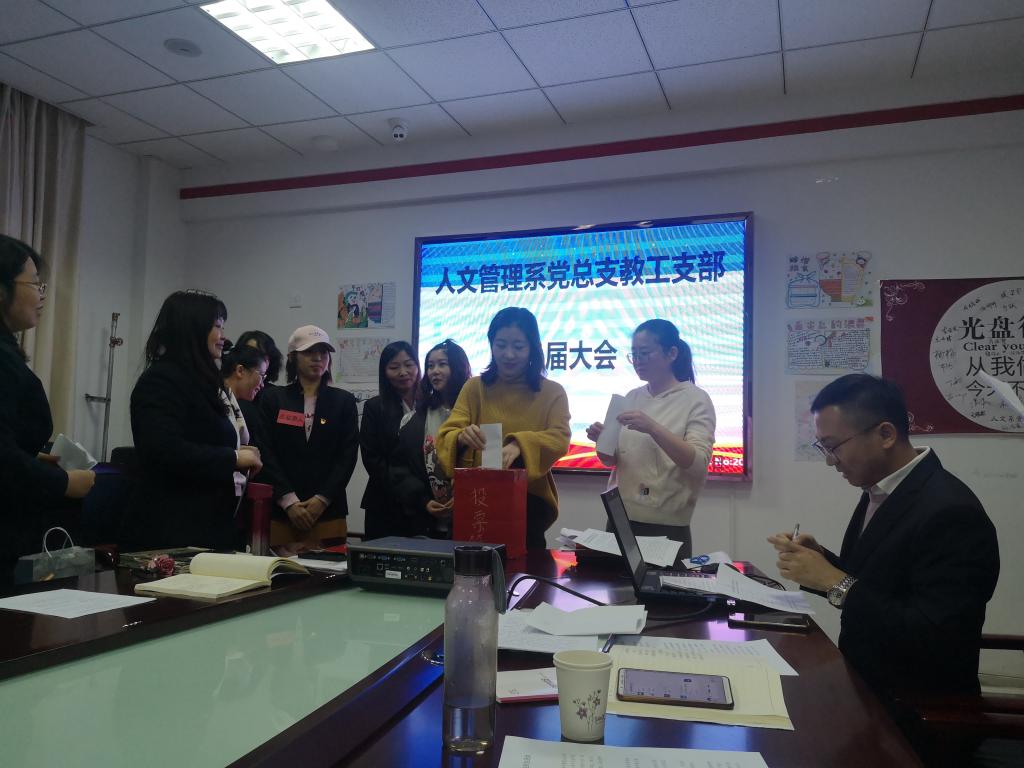 会上,按照《党章》要求和有关程序,以举手表决的形式依次通过委员会候选人名单、监票人和计票人名单;通过无记名投票差额选举的方式,选举产生了杨梅、马宁、杜晓娜3名同志为人文管理系新一届教工党支部委员会委员。