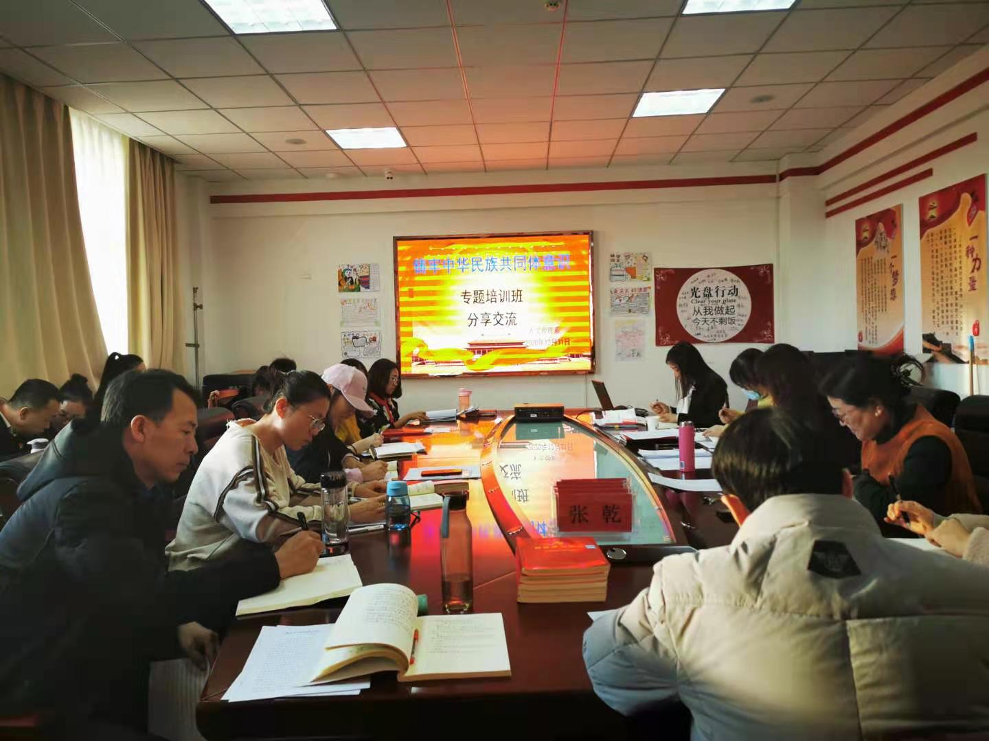 为深入学习贯彻、全面准确领会习近平总书记关于民族工作的重要论述、推广普及国家通用语言文字和使用国家统编教材的重要指示批示精神和党中央决策部署,根据自治区党委高校工委、自治区教育厅党组《关于印发<全区教育系统开展铸牢中华民族共同体意识培训教育方案>的通知》要求及《学院关于“铸牢中华民族共同体意识”专题培训工作方案》文件精神,2020年12月31日下午,人文管理系党总支组织全系教职工在教研楼431会议室开展“铸牢中华民族共同体意识”专题培训分享交流会。
