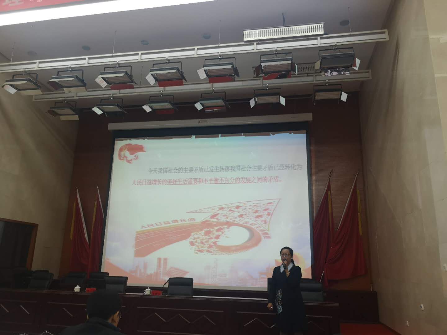 与会人员聆听了内蒙古师范大马克思主义学院教授、硕士研究生导师王立华就深入学习贯彻习近平新时代中国特色社会主义思想和《习近平谈治国理政》(第三卷)内容进行的专题辅导。