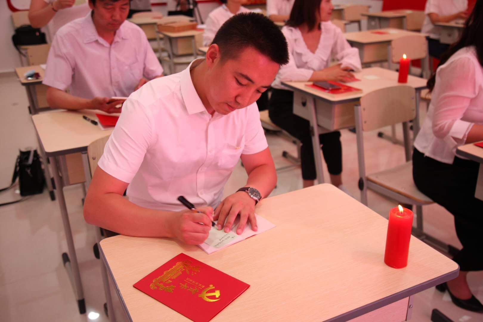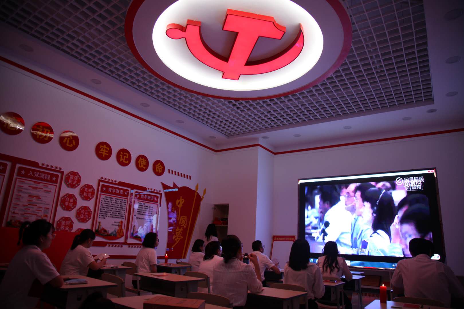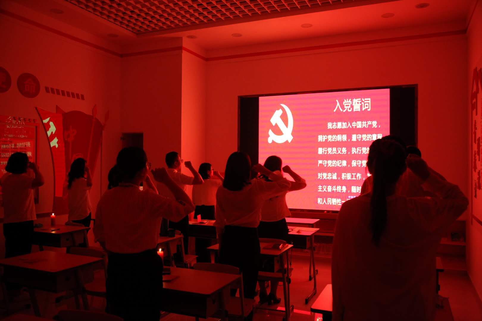 党日活动从回顾“红船”精神开始,全体党员在红烛下庄严宣誓,重温入党誓词。