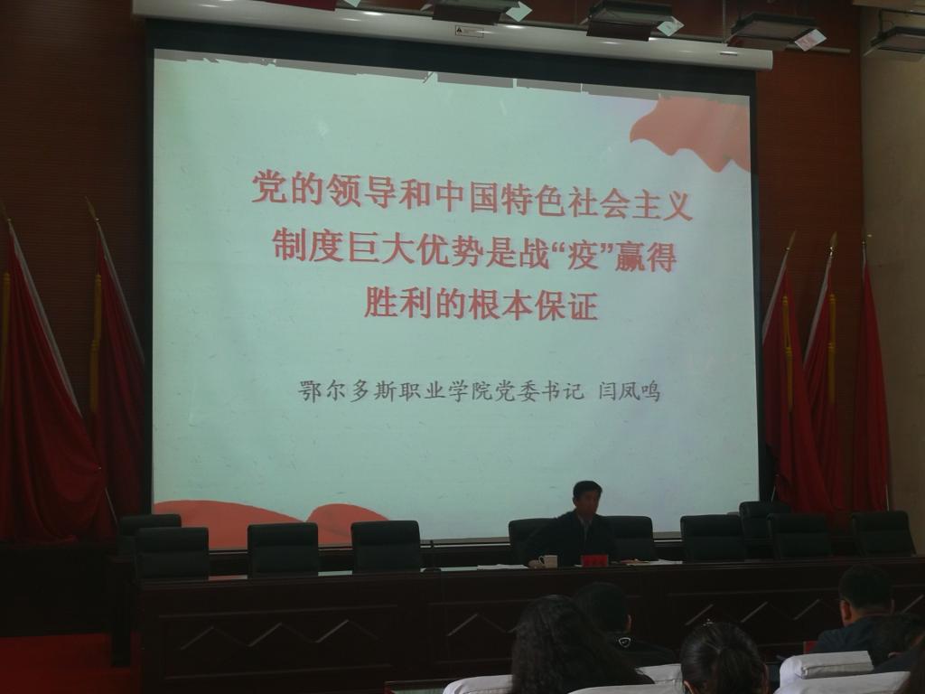 与会人员听取了陶院长就全国全区教育系统从严治党工作视频会议精神的传达,聆听了学院党委书记闫凤鸣的党课。