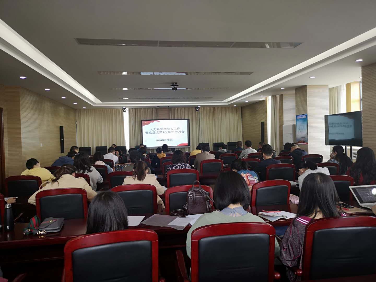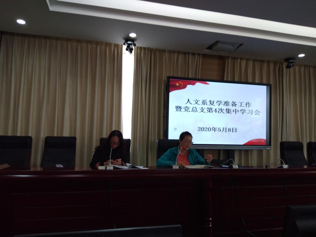 5月8日,人文系在行政楼518会议室召开开学复课准备工作会暨总支第4次集中学习会。系党总支副书记杨梅主持会议。系主任白玲及全体教职工参加会议。