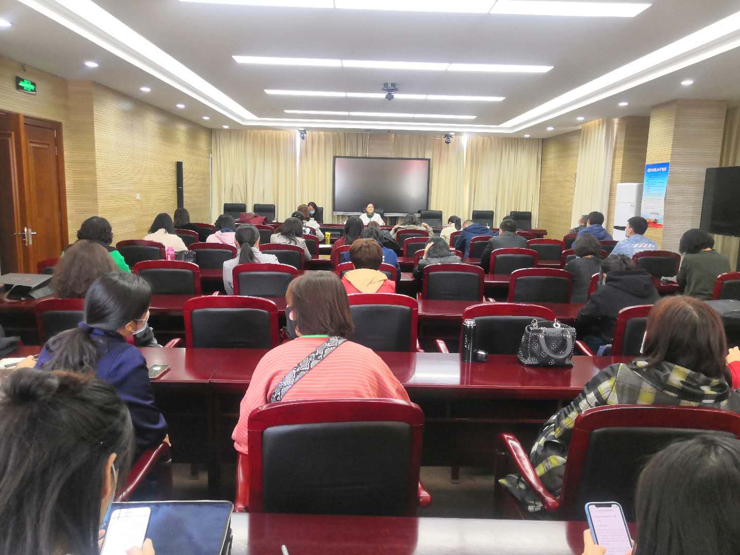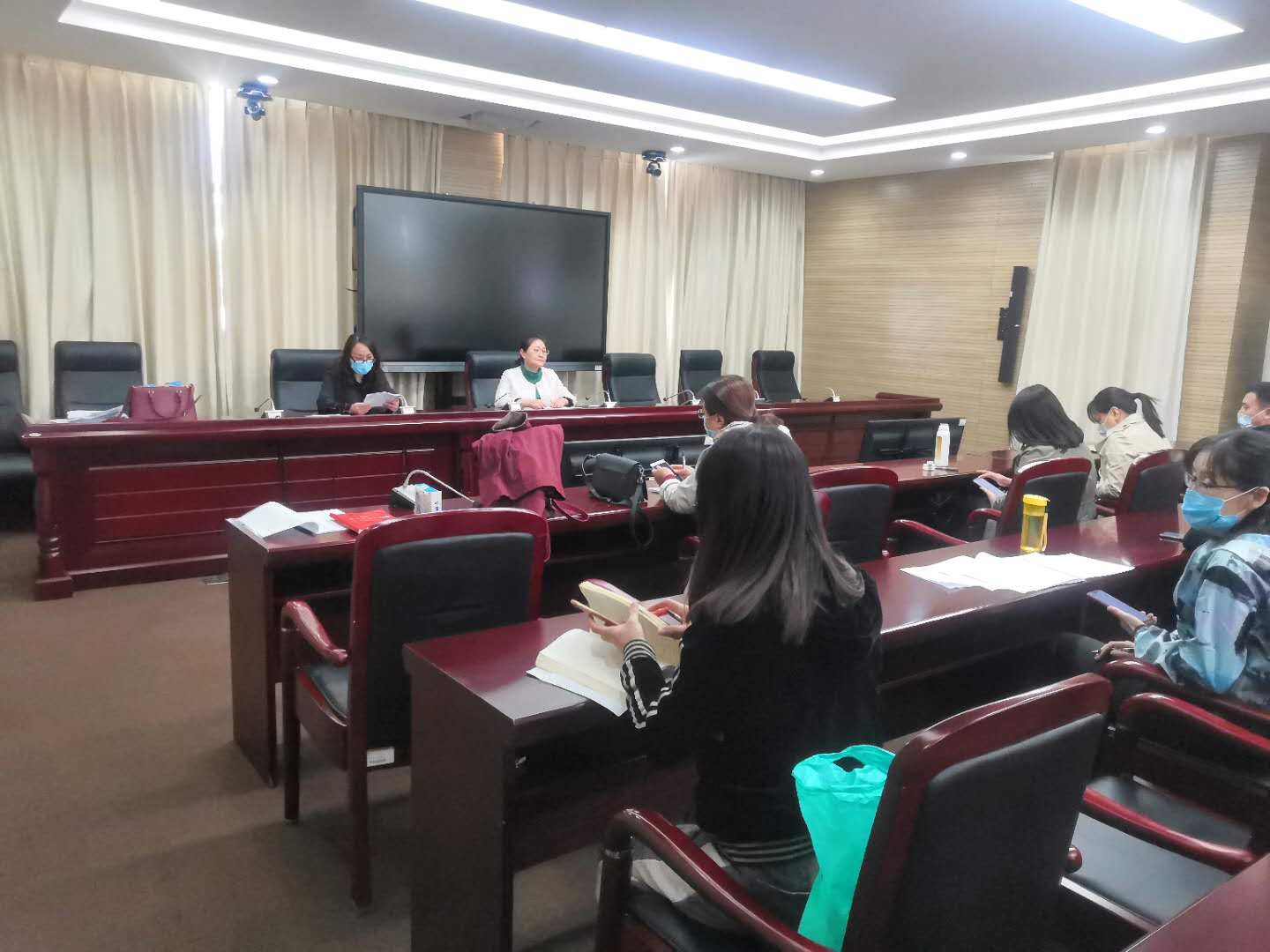 2020年4月17日下午15:00,人文系在行政楼518会议室召开全体教职工大会,系部党总支副书记杨梅主持会议,全体教职工参会。