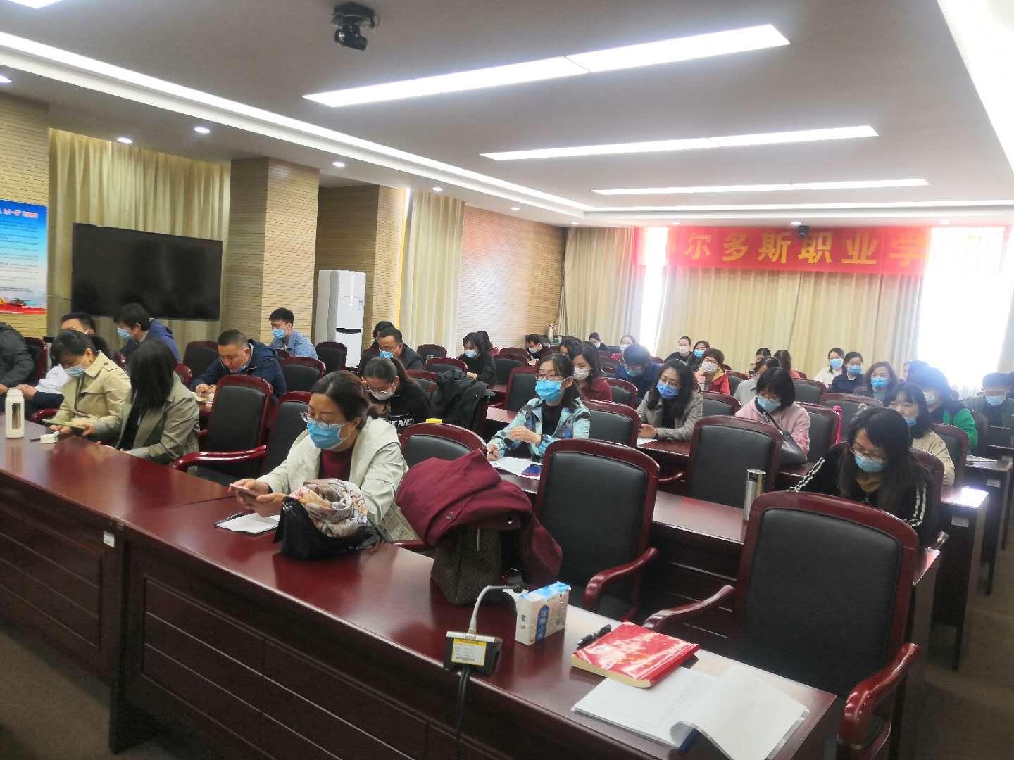 杨书记宣读《大专院校新冠肺炎疫情防控技术方案》、《开云手机官方版在线入口关于行政教职工返校做好开学准备工作的通知》,详细部署返校工作,要求教职工返校时佩戴口罩,做好自我防护,同时,督促教职工、学生做好每日健康数据填报工作。