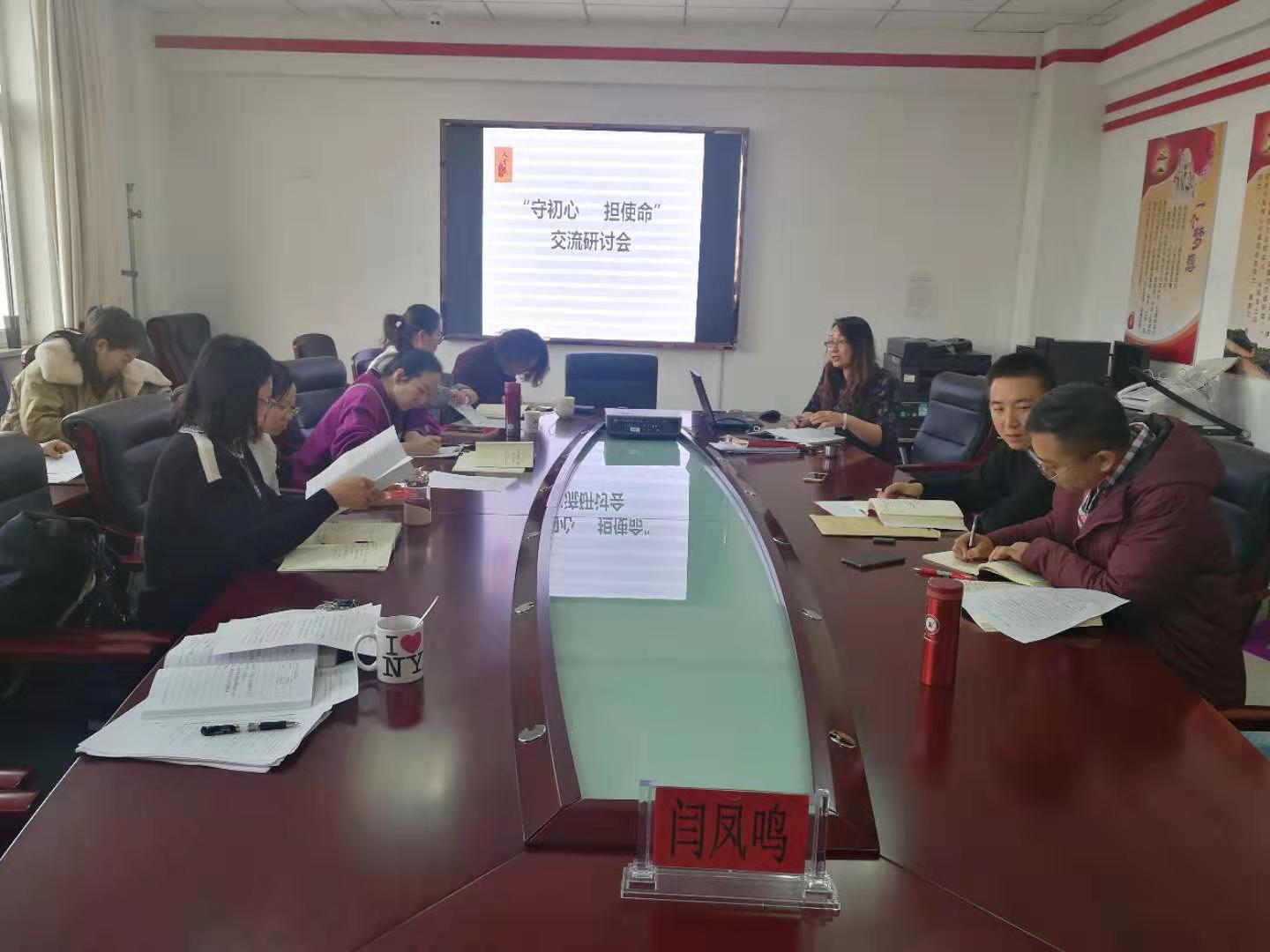 最后,全体教师党员围绕“守初心、担使命”这个主题,结合“不忘初心、牢记使命”主题教育学习体会和自身教学及工作实际,进行了交流研讨。