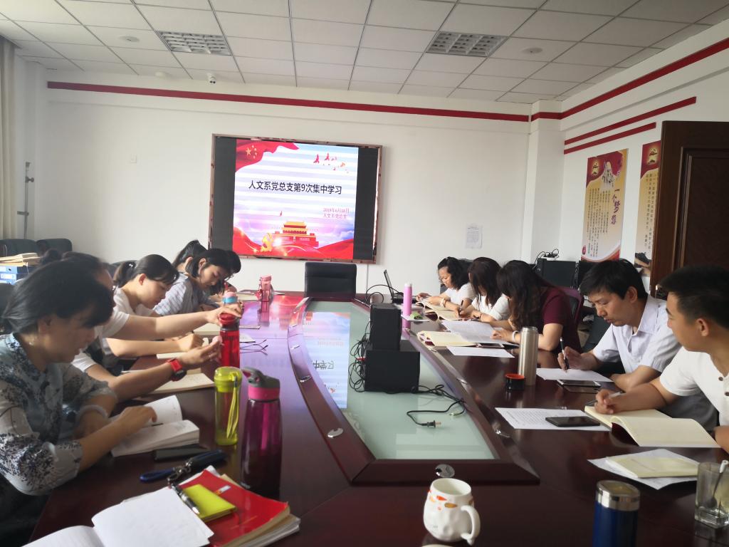 6月18日下午,人文系党总支在教研楼431会议室举行第9次集中学习。人文系全体教师党员参加了学习。