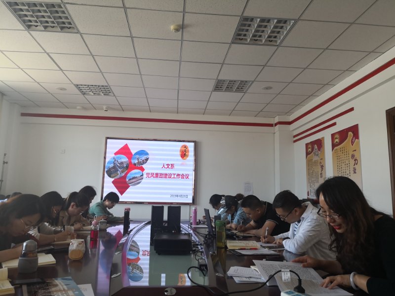 4月23日,人文系党总支在教研楼431会议室组织召开党风廉政建设工作会议。人文系党总支副书记杨梅同志主持会议。人文系全体教师党员参加了本次会议。