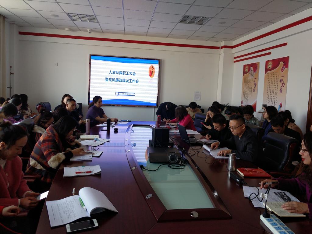 2019年3月3日下午,人文系在教研楼431召开全系教职工大会暨党风廉政建设工作会。系主任白玲主持了会议。全体教职工参加会议。