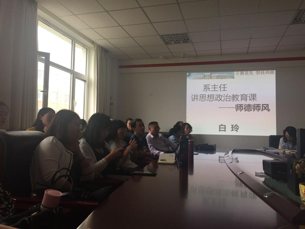 会上,人文系系主任白玲通报了人文系今年招生及教师变动情况,组织学习了《高等学校教师职业道德规范》,并结合实际作了关于师德师风的讲座,着重强调了教师在意识形态方面对学生的引领教育作用,要求全系教职工提高认识,规范言行,真正做到“学高为师、身正为范”。