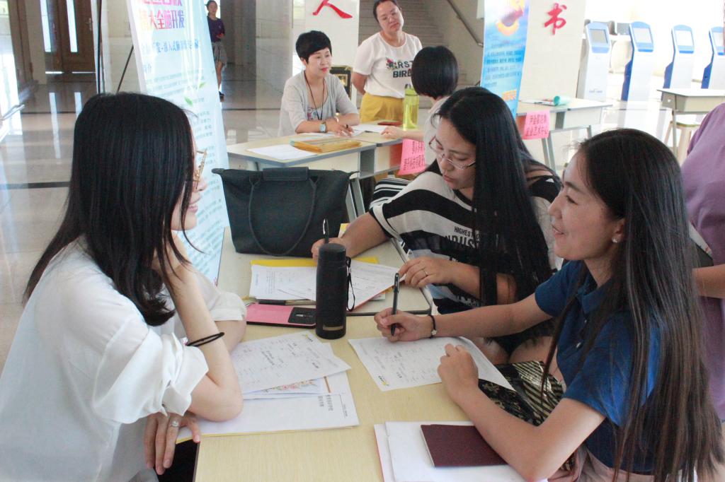 为切实做好毕业生就业工作,大力构建毕业生与用人单位的交流平台,积极为用人单位输送应用型人才,2018年6月26日,人文系在学院图书馆一楼大厅举办了学前教育专业专场招聘会。学院领导对此次招聘会高度关心和支持,招生就业处、对外合作交流处处长孙虎与人文系党总支副书记杨梅亲临会场指挥并与用人单位和毕业生亲切交流。人文系2015级的毕业生积极踊跃参加了此次校园招聘会。