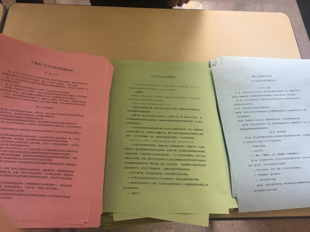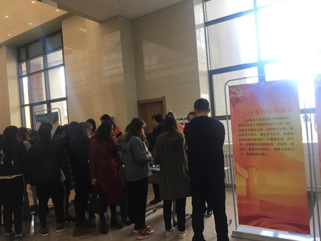 在学院图书馆一楼活动展台,人文系党总支和电大支部的师生为全院师生提供了咨询服务,他们围绕“当你作为党员的权利受到侵害时如何维权 ”“当代大学生如何维权?“学院学生在校内如何申诉”等问题进行讲解,并现场发放了《中国共产党党员权利保障条例》《开云手机官方版在线入口学生校内申诉管理办法》等宣传资料,让全院师生懂得使用法律程序维护自己的权利。
