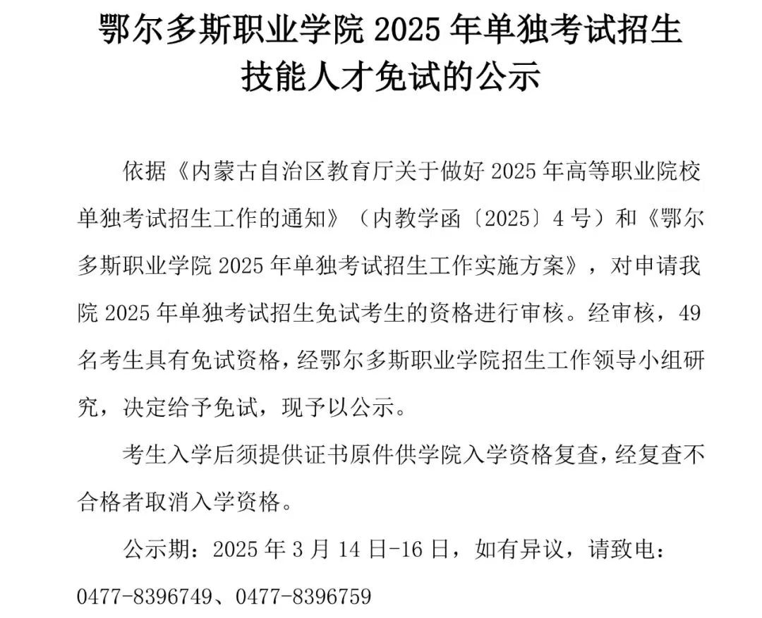 开云手机官方版在线入口2025年单独考试招生技能人才免试的公示