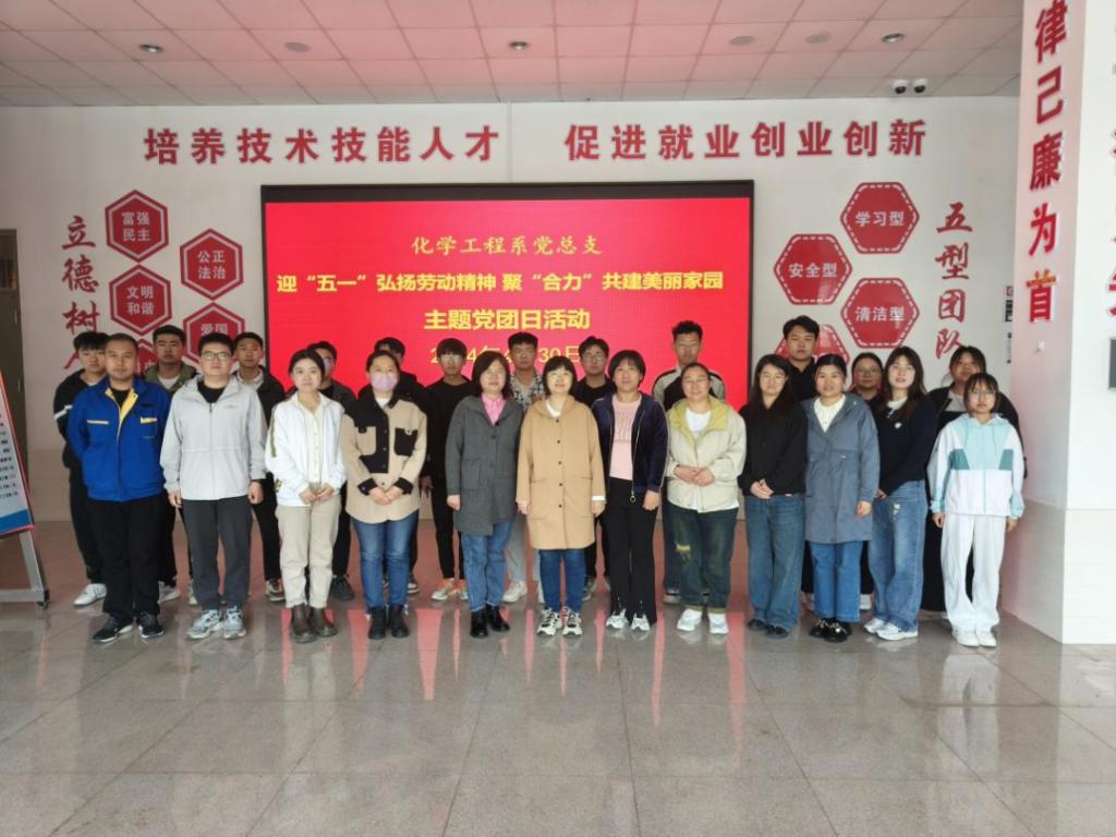 为大力弘扬劳模精神、劳动精神、工匠精神,传承“爱国、进步、民主、科学”的五四精神,4月30日,化学工程系在化工实训楼组织开展“迎‘五一’弘扬劳动精神 聚‘合力’共建美丽家园”主题党团日活动,全体无课党员教师、部分青年志愿者参加了活动。