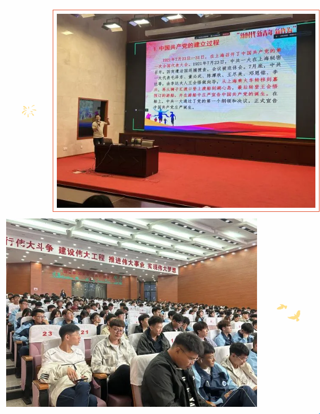 月5日,邀请组织统战部杨志老师在报告厅开展了党团教育活动。杨老师以激情澎湃的语言,深入浅出地阐述了大学生的入党条件和流程、入党申请书的格式等入党基本知识,还引导新生们思考如何树立正确的入党动机并争取在大学期间加入中国共产党,为实现中华民族伟大复兴的中国梦贡献青春力量。在这堂课上,使同学们感受到了信仰的力量,明白了作为新时代青年所肩负的责任。相信本次党团教育,会如同一把火炬,点燃同学们心中的热情,激励着积极向党组织、团组织靠拢,为实现中华民族伟大复兴的中国梦贡献自己的力量。