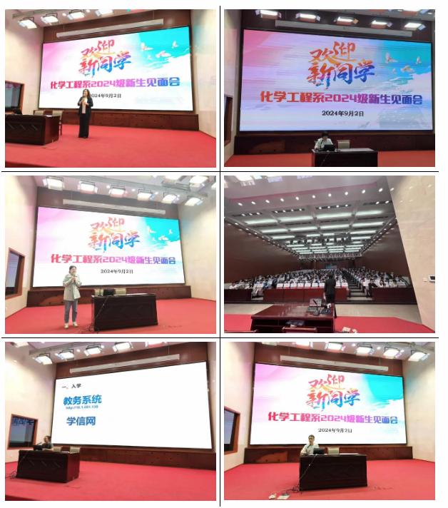 9月2日,化学工程系在报告厅举行了2024及新生见面会,化学工程系全体教师参加了会议。会上,党总支书记、主任马桂香、副书记朱晴、副主任钱春苹分别对新生寄予厚望,期待同学们能在致力于深入研习专业知识的同时踊跃投身于各类实践活动之中,在实践中磨砺自我,不断提升个人的综合素养与能力水平,努力成长为优秀的化工工程师。