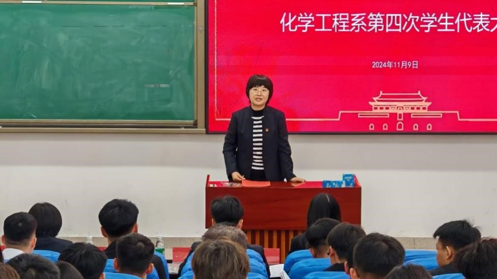 为进一步加强学生会骨干队伍建设,提升学生组织引领和服务能力,化学工程系于11月9日上午在教学楼阶梯教室122举行了我系第四次学生代表大会。化学工程系党总支副书记朱晴、学工科及教务科科长张乾、团总支书记高境泽,辅导员张晓东、余雨晴及23、24学生代表参加了会议。