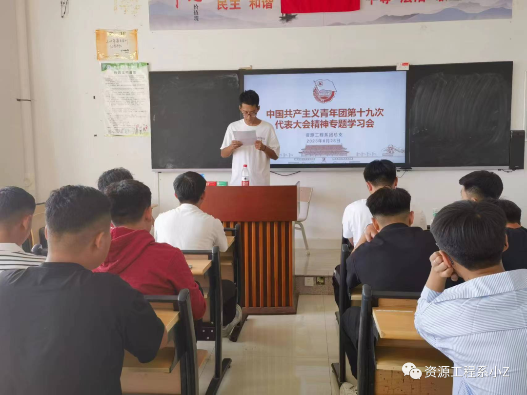6月22日,中国共青主义青年团第十九次全国代表大会在人民大会堂胜利闭幕。为更好地引领青年、凝聚青年,深刻把握新时代中国青年思想建设,加强对青年工作的领导,团结带领青年团奋力前行。8月31日下午,资源工程系团总支组织全体学生团员开展团十九大精神专题学习会。