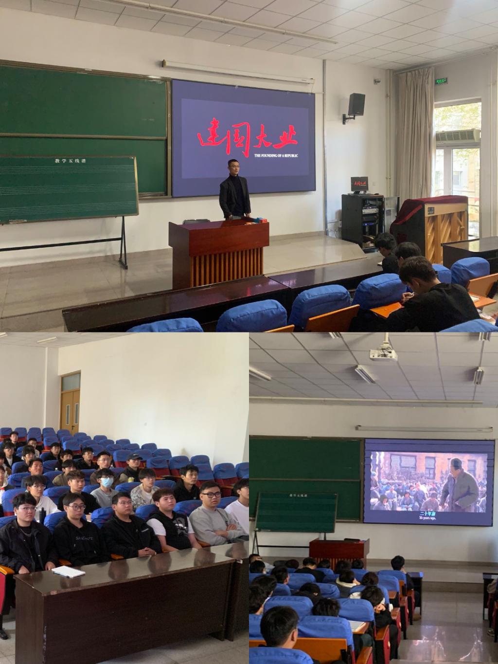 影片播放前,现场秩序井然,大屏幕上开始播放《建国大业》,观影氛围极其严肃。随着影片的播放,同学们仿佛被带回到了那个动荡的年代。