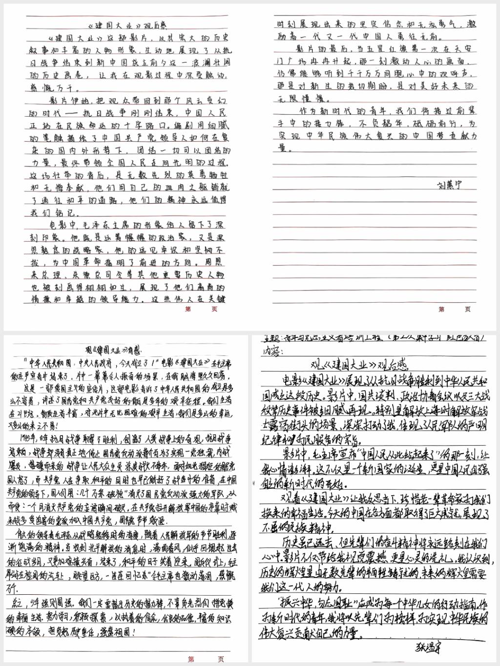影片结束后,同学们纷纷表示深受影片启发。张温宇同学说:“通过观看《建国大业》,我更加深刻地认识到我们今天的幸福生活来之不易,是无数革命先烈用生命换来的。作为青马班的一员,我们要传承和弘扬革命先辈的精神,努力学习本领,为实现中华民族伟大复兴的中国梦贡献自己的力量。”同学们都在观影结束后写下了自己的观后感。