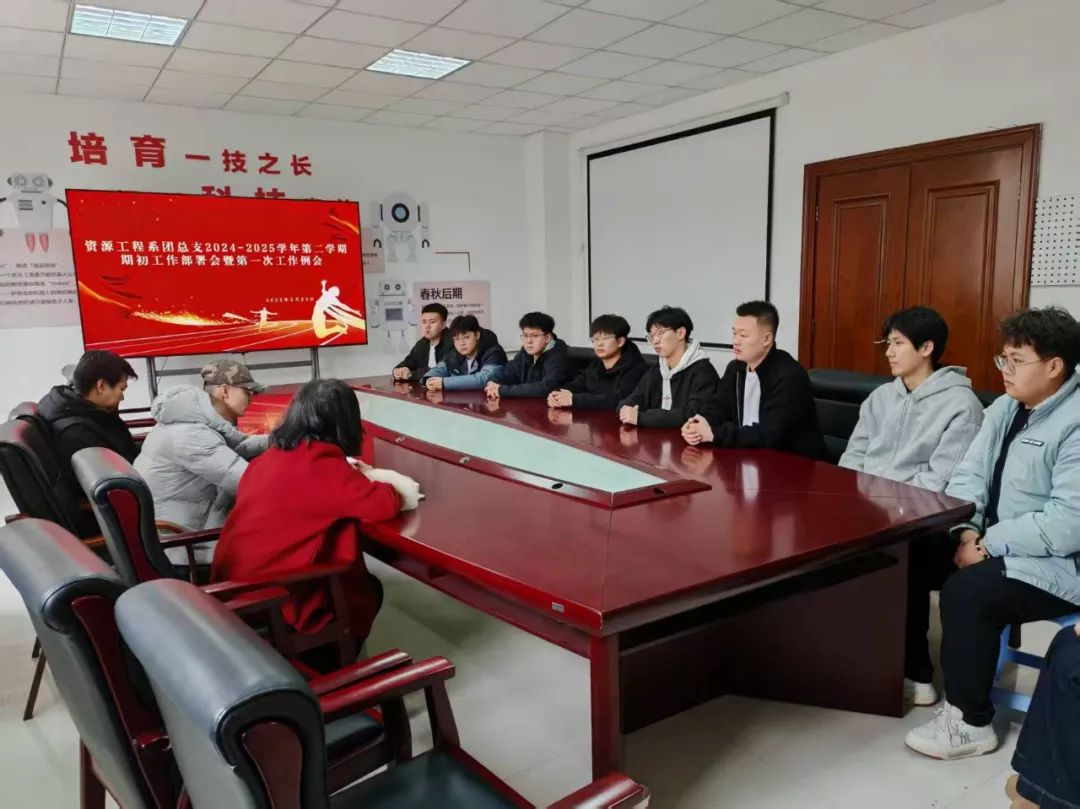 新学期伊始,为确保资源工程系团总支工作顺利开展,明确工作方向,2024 年 2 月 24 日,资源工程系团总支召开2024-2025 学年第二学期期初工作部署会暨第一次工作例会。资源工程系党总支副书记卓庆奉、学工与综合管理科科长任建峰、团总支书记李子洋,以及各团总支负责人和学生会各部门负责人齐聚一堂,共商新学期工作规划。