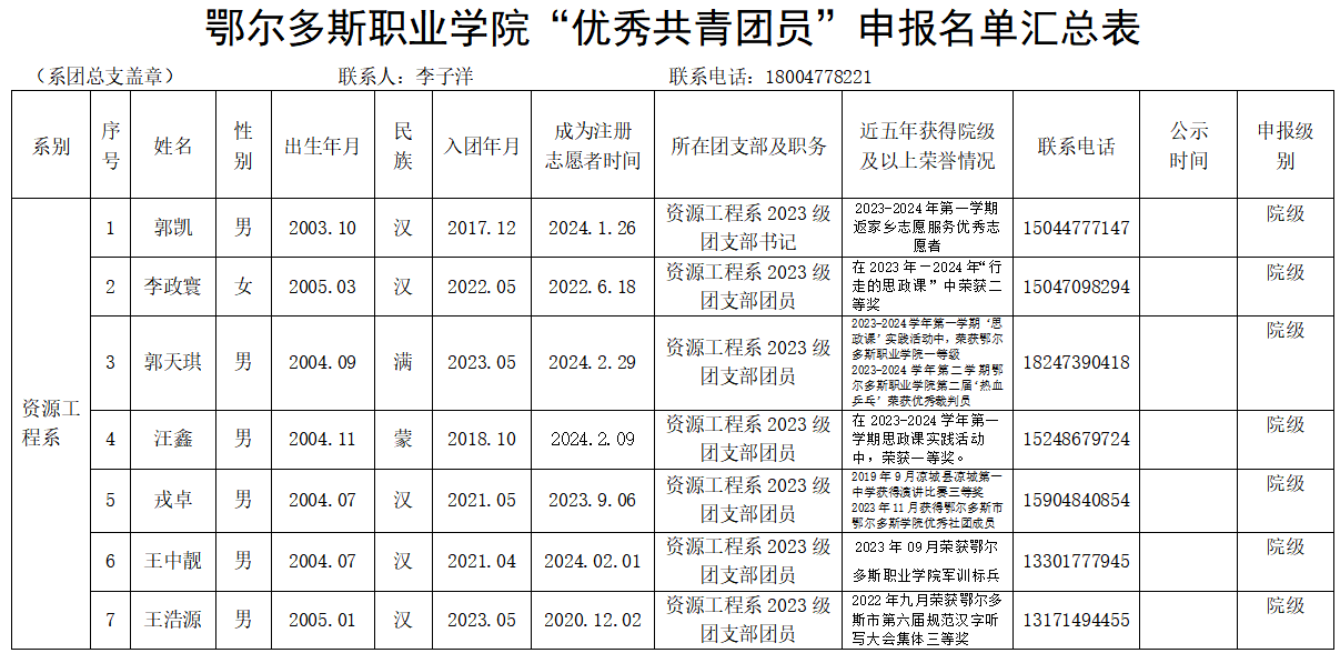 为深入贯彻落实习近平总书记关于青年工作的重要思想,动员引领广大团员青年为强国建设、民族复兴伟业挺膺担当,根据共青团开云手机官方版在线入口委员会《关于申报2023年度全院“优秀共青团员”“优秀共青团干部”“五四红旗团支部(总支)”的通知》要求,经个人申请、资格审核、系部推选、综合评选等程序现将我系2023-2024学年第二学期“优秀共青团员”“优秀共青团干部”“五四红旗团支部(总支)”推报院级评选人予以公示:
