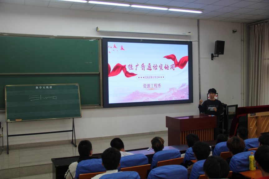 为积极响应国家推广普通话的号召,资源工程系于2024年9月21日在阶梯教室122举行推广普通话暨民族故事分享会活动,旨在通过分享各民族的精彩故事,铸牢中华民族共同体意识,推广普通话。