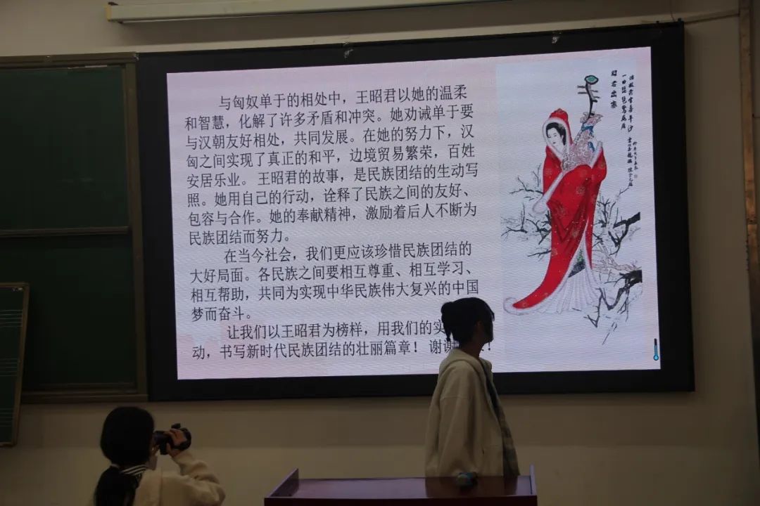 在分享过程中,同学们使用流利的普通话,生动地讲述了身边有关少数民族团结的故事,让大家对不同民族的文化有了更深入的了解和认识。活动还通过一些视频资料向同学们普及了铸牢中华民族共同体的重要性。通过分享,同学们深刻体会到了普通话作为共同语言在促进民族交流融合中的重要作用。