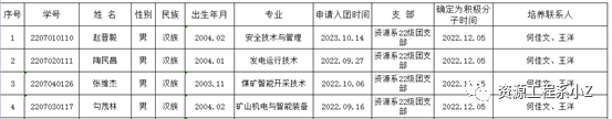 经前期各班级推优、入团积极分子培训考核及平时综合表现,资源工程系团总支部商讨决定,拟确立赵晋毅等4名学生为新一批入团发展对象,为发扬民主,广泛听取群众意见,接受群众监督,现将赵晋毅等4名学生的情况予以公示,公示期为3天(2023年6月14日-6月16日)。如有异议,可在公示期内向本支部反映。