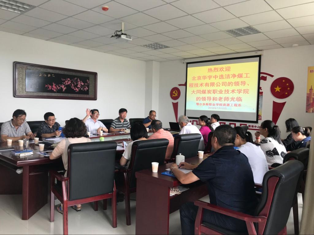 7月10日,在我院教研楼425会议室,北京华宇中选洁净煤有限责任公司与我院资源工程系、大同煤炭职业技术学院机电工程系的部分骨干教师对”华宇中选”冠名班的人才培养方案进行了研讨。