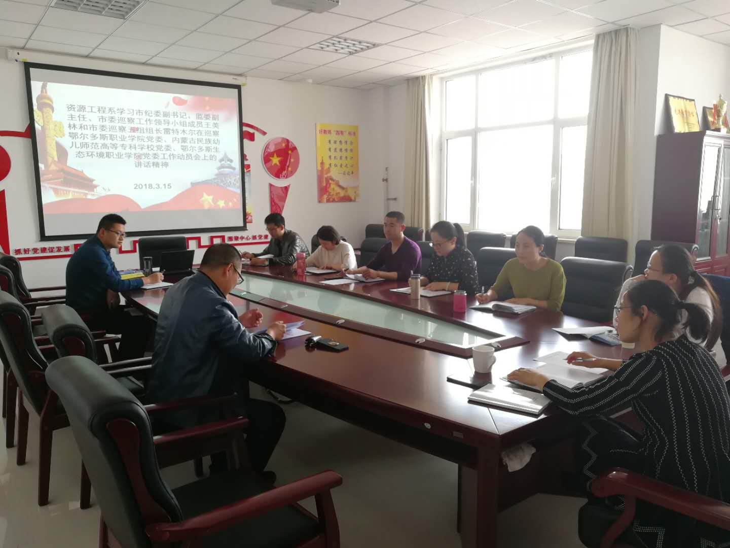 3月15日,资源工程系组织所有教师认真学习市纪委副书记、监委副主任、市委巡察工作领导小组成员王美林和市委巡察五组组长雷特木尔在巡察开云手机官方版在线入口党委、内蒙古民族幼儿师范高等专科学校党委、鄂尔多斯生态环境职业学院党委工作动员会上的讲话精神。会上,教师们对领导们的讲话稿进行认真研读,并进行讨论学习,领悟领导的讲话精神。