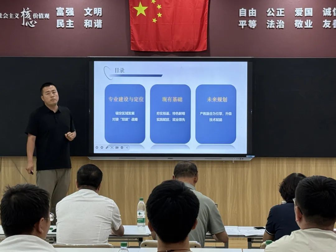 为进一步提升人才培养质量,围绕“五金”建设中的“金专业”建设内容,机电工程系于6月27日举办了“说专业特色绘双高蓝图 论课程改革育时代匠才”说专业活动。学院副院长杭刚、教务处处长郝巧梅莅临活动现场,银龄计划专家王贵、殷黎丽教授作为点评专家出席本次活动。