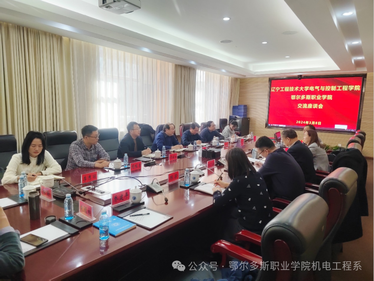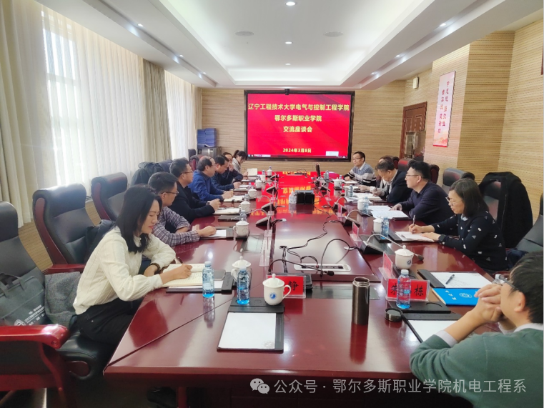 3月8日下午,学院与辽宁工程技术大学副秘书长、鄂尔多斯研究院执行院长韩雪峰,辽宁工程技术大学电气与控制工程学院党委书记田国胜、院长彭继慎一行举行交流座谈会。学院党委委员、科研产业处处长郝霄鹏,教务处副处长苗文莉,机电工程系党总支副书记张科强、副主任朱志鑫及各专业负责人参加座谈会。