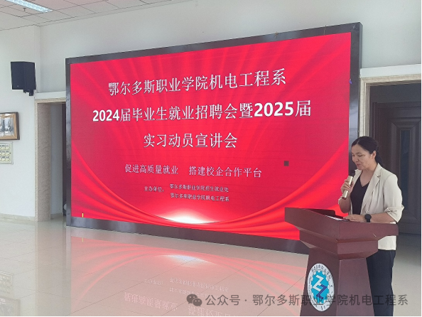 为提高推进学生实习就业工作,加强学校与企业的良性互动,形成实习、就业的紧密链接,6月4日机电工程系举办了2024届毕业生就业招聘会及2025届学生的实习动员宣讲会。本次活动邀请了乌兰集团、万众炜业和蒙泰集团3家企业参加,2024届部分毕业生及2025届全体学生及班主任参加,活动由机电工程系副主任朱志鑫主持。