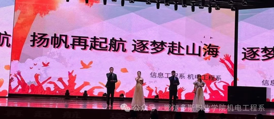 机电工程系党总支副书记张科强、信息工程系党总支副书记李莉杰及两系师生参加了晚会。晚会分“朝时携谊·初相遇”“星辰大海·共少年”“心怀炽热·纪青春”三个篇章。
