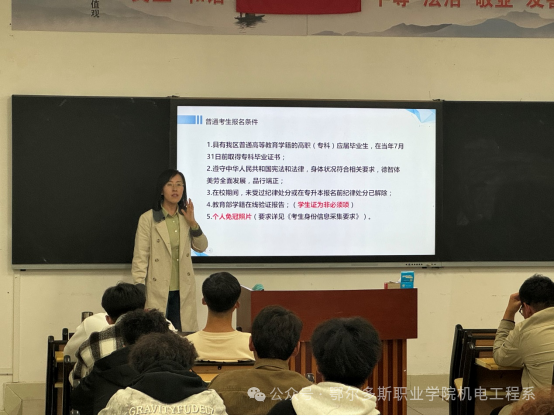 为助力学生全面了解和准确把握最新的专升本政策和路径,10月11日,机电工程系举办了关于专升本政策解读的宣讲活动。
