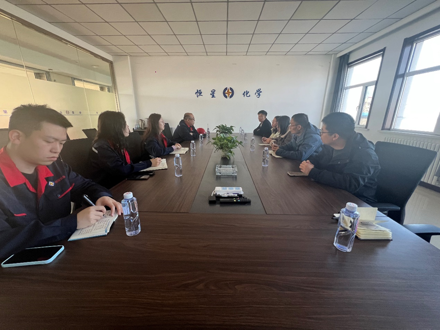 在恒星化工有限公司,人力资源负责人首先介绍了企业发展现状,双方就企业用工需求,人才培养、上岗证书考核、实训设备等进行交流。老师们深入企业生产一线调研化工设备,了解企业设备使用情况,走访动力车间、生产车间和中控车间,与生产人员、设备人员探讨生产工艺等问题。